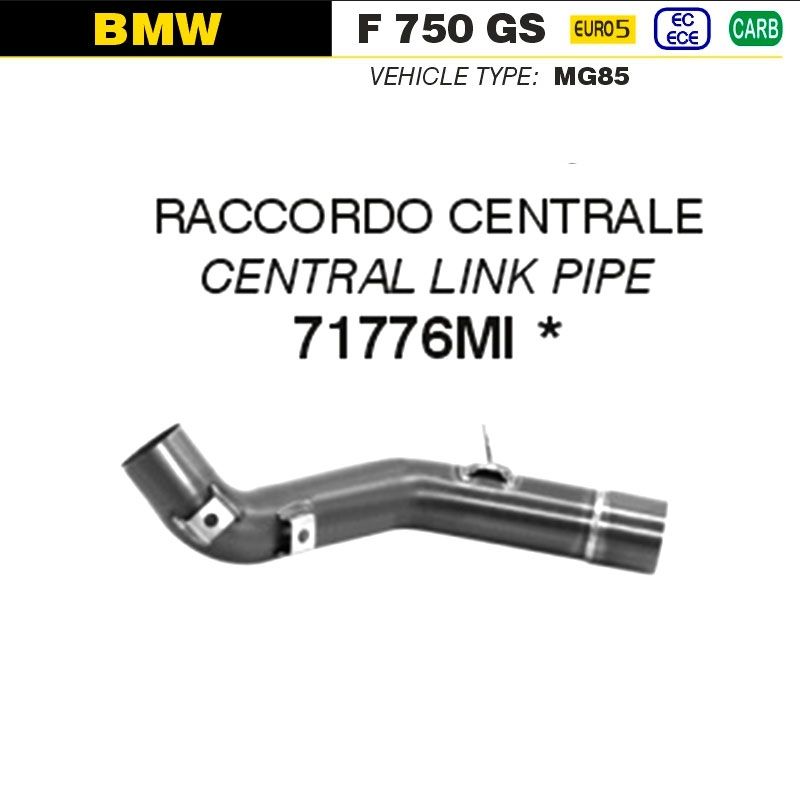 Conector central escape Arrow 71776MI Bmw F 750 GS 2021-2023. Conector central Arrow 71776MI para la Bmw F 750 GS y F 850 GS 2021-2023 racing no homologado de acero inoxidable y permutable con el original. Compatible con escape original y escapes Arrow.