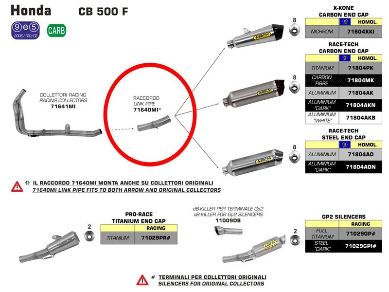 Conector escape Arrow 71640MI Honda CB 500 F / CBR 500 R 2016-2018. Conector central Arrow 71640MI para colector original y Arrow. Este conector es necesario para montar los silenciosos Arrow X-Kone y Race-Tech.Realizado en acero inoxidable.