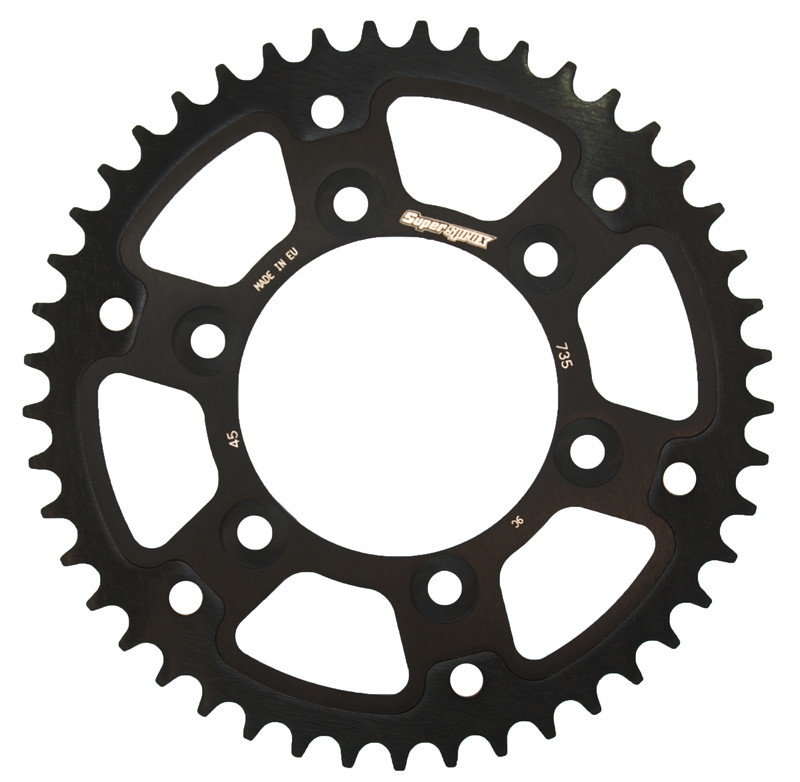 Corona Supersprox RST735X45BLK. Corona Supersprox RST735X45BLK con acabados de la mejor calidad y diseñada para ofrecer la mejor durabilidad. La corona Supersprox Stealth posee el cuerpo interior de aluminio y la corona exterior en acero con tratamiento anticorrosión tres veces más duradera y resistente que una corona de aluminio. Dientes ranurados para evitar la acumulación de suciedad. La imagen mostrada es simplemente orientativa.