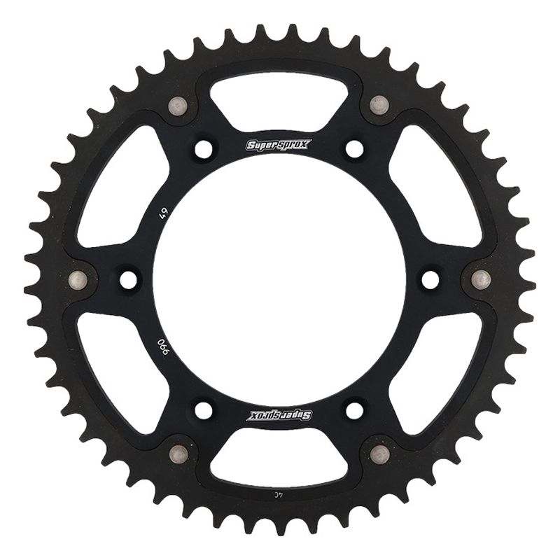 Corona Supersprox RST990X49BLK. Corona Supersprox RST990X49BLK en acero de 49 dientes y paso 520. Cuenta con acabados de la mejor calidad y diseñada para ofrecer la mejor durabilidad. La corona Supersprox Stealth posee el cuerpo interior de aluminio y la corona exterior en acero con tratamiento anticorrosión tres veces más duradera y resistente que una corona de aluminio. Dientes ranurados para evitar la acumulación de suciedad. La imagen mostrada es simplemente orientativa.