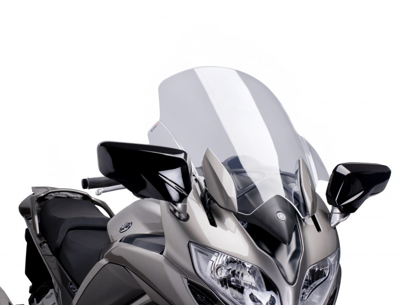 Carenabris Puig 6483W Transparente. Cúpula Puig Touring para Yamaha Fjr 1300A/ As 2013/ 2015. Para conducciones de larga distancia, Puig introduce la serie Touring para minimizar al máximo la fuerza del viento. Estas cúpulas levantan el paso del viento en varios centímetros, en relación a la cúpula original, permitiendo que el conductor mantenga una posición más cómoda y confortable conduciendo la motocicleta. Fabricada en acrílico de alto impacto de 3 mm, resistente y duradero. Perfil redondeado a 3 mm en los modelos desde el 2004, cumpliendo con la normativa del TÜV alemán. No se requiere ribete. Medidas (Altura x Anchura): 620 x 520 mm. 130 mm más alta que la original.