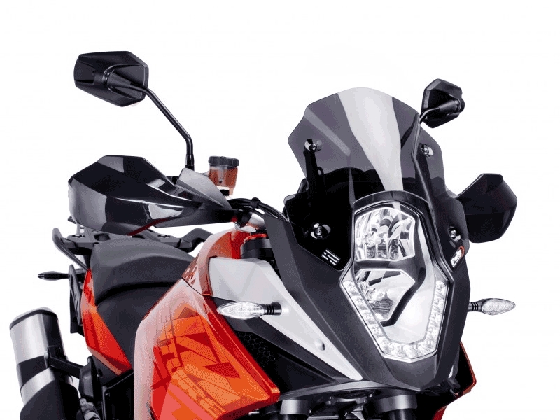 Carenabris Puig Racing 6847F Ahumado Oscuro. Cúpula derivada de la competición y específica para Ktm 1050/ 1190 Adventure/ R. Las cúpulas Puig Z-Racing estudiadas en el túnel del viento, mejoran el coeficiente aerodinámico y la protección contra el viento en un 12,7% de media. Su doble altura disminuye el efecto del aire sobre el casco. Realizada en acrílico de alto impacto de 3 mm, resistente y duradero. Perfil redondeado a 3 mm en los modelos desde el 2004, cumpliendo con la normativa del TÜV alemán. No se requiere ribete. Medidas (Altura x Anchura): 340 x 310 mm.