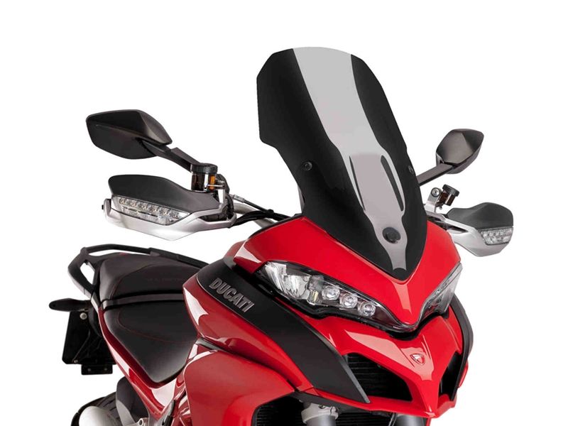 Carenabris Cúpula Puig Touring 7623N Ducati Multistrada 1200 2015 Negra. La cúpula Puig 7623N Touring está indicada para conducciones de larga distancia. Su diseño es específico para la nueva Ducati Multistrada 1200 y gracias a su doble altura, mejora notablemente la aerodinámica y la disminución del efecto del viento sobre el casco de motorista. De la resistencia se encarga un acrílico de alto impacto con 3 mm de grosor que garantiza la máxima durabilidad y acabados impecables.