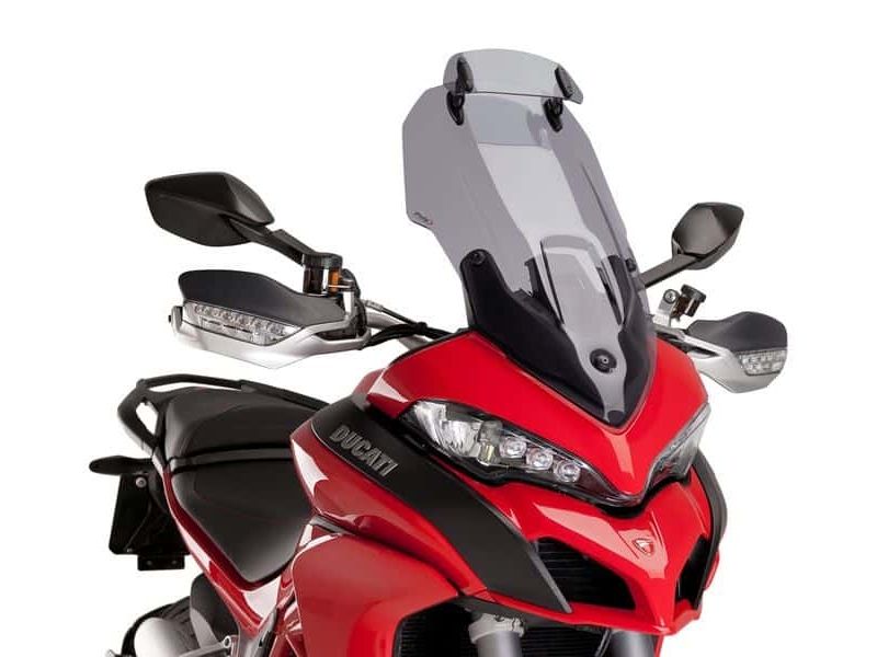 Cúpula Puig 7624H Ducati Multistrada 1200/1260. La cúpula Puig 7624H Touring con visera multiregulable ha sido diseñada en el túnel del viento para mejorar la estabilidad y penetración aerodinámica de la cúpula original. Concebida especialmente para recorridos de larga distancia, la cúpula Puig 7624H permite regular su altura dependiendo de las necesidades de cada motorista. Cuenta con un grosor de 3 mm y está realizada en acrílico de alto impacto. Homologación ABE 3818 y TÜV.