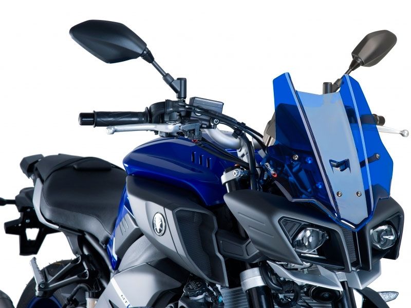 Carenabris Cúpula Puig Racing 8917A Yamaha MT-10 2016 Azul. La cúpula Puig 8917A Racing derivada directamente de la experiencia adquirida en competición. Su diseño es específico para la nueva Yamaha MT-10 y gracias a su doble altura, mejora notablemente la aerodinámica y la disminución del efecto del viento sobre el casco. De la resistencia se encarga un acrílico de alto impacto con 3 mm de grosor que garantiza la máxima durabilidad y acabados impecables. Se ha comprobado en el tunel del viento, que las cúpulas racing z-racing mejoran el coeficiente aerodinámico en un 12,7% de media.