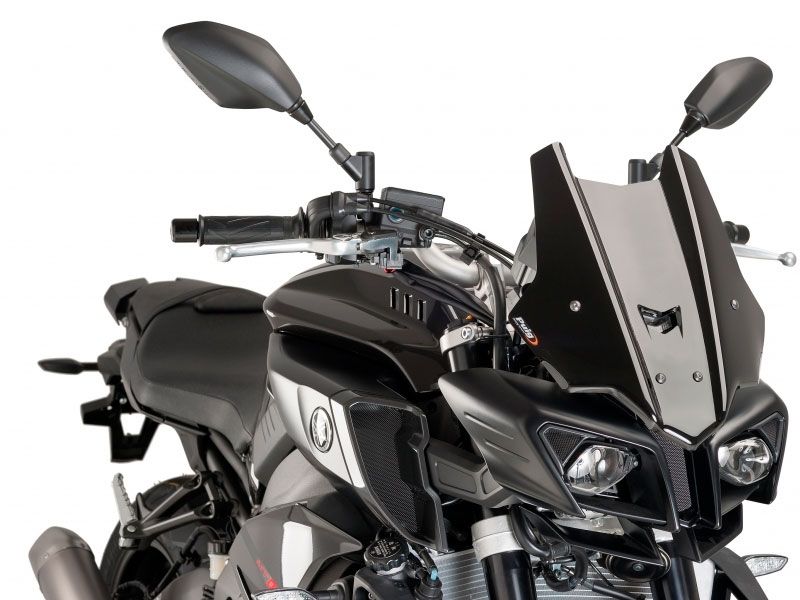 Carenabris Cúpula Puig Racing 8917N Yamaha MT-10 2016 Negra. La cúpula Puig 8917N Racing derivada directamente de la experiencia adquirida en competición. Su diseño es específico para la nueva Yamaha MT-10 y gracias a su doble altura, mejora notablemente la aerodinámica y la disminución del efecto del viento sobre el casco. De la resistencia se encarga un acrílico de alto impacto con 3 mm de grosor que garantiza la máxima durabilidad y acabados impecables. Se ha comprobado en el tunel del viento, que las cúpulas racing z-racing mejoran el coeficiente aerodinámico en un 12,7% de media.