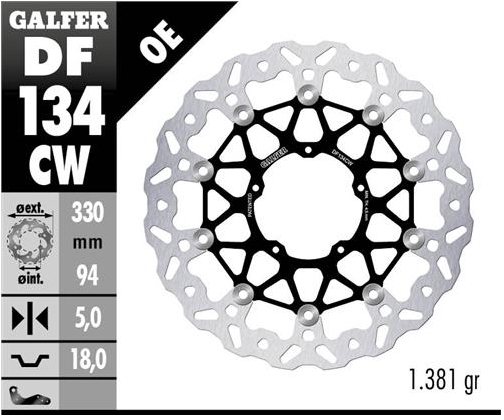 Disco de freno Galfer DF134CW Wave Flotante Completo Nucleo Aluminio 330mm