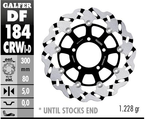 Disco de freno Galfer DF184CRWD Wave Flotante Ranurado Derecho. Descubre la máxima tecnología en sistemas de frenado con los discos de freno Galfer Wave Flotantes. Estos discos de freno están diseñados para ofrecer un rendimiento superior, combinando potencia de frenado y una excelente capacidad de disipación del calor, ideales para los motociclistas que exigen lo mejor en sus rutas.