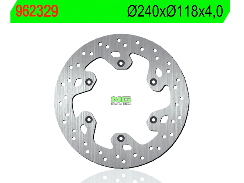 Discos freno moto / Referencia NG: 962329. Los discos de freno NG se fabrican con materiales de primera calidad y maquinaria de última tecnología, consiguiendo con ello que los discos estén a la vanguardia de los sistemas actuales de frenado de las mejores motocicletas, ciclomotores y quads. Los discos de freno NG son utilizados por las primeras marcas mundiales y se venden en más de 17 países. Precio unitario.