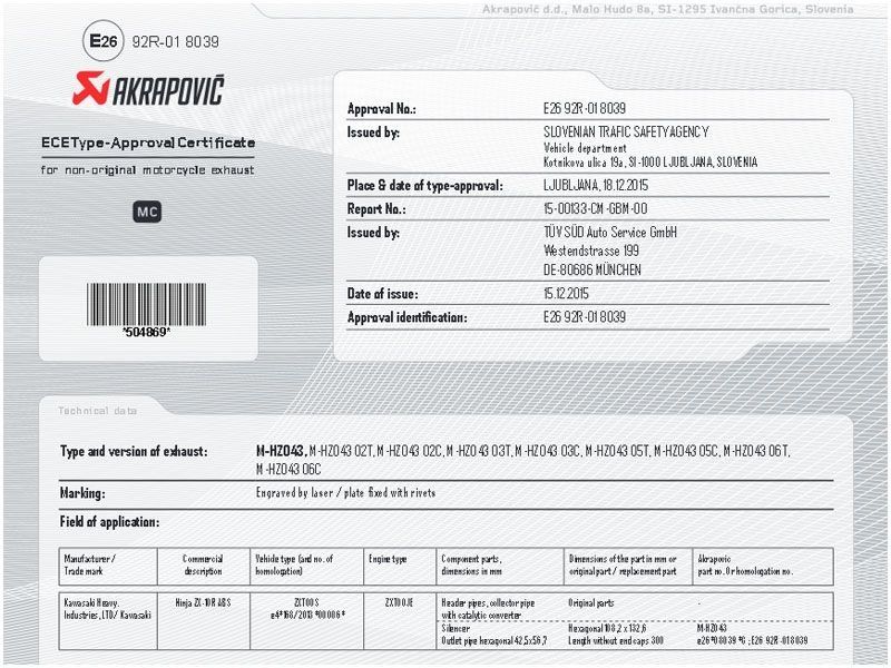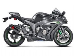 Silencioso de escape Akrapovic Slip-On S-K10SO16-HZC. El Slip-On Akrapovic S-K10SO16-HZC se ha diseñado específicamente para cada modelo de moto y gracias a su diseño de vanguardia, ofrece un sonido característico con las máximas prestaciones que un silencioso de escape puede ofrecer. La funda exterior está realizada en titanio o carbono (según modelo) muy resistente y ligero. Con el montaje del silencioso de escape Slip-On Akrapovic S-K10SO16-HZC, se consigue también una notable reducción del peso respecto al escape original de la moto.