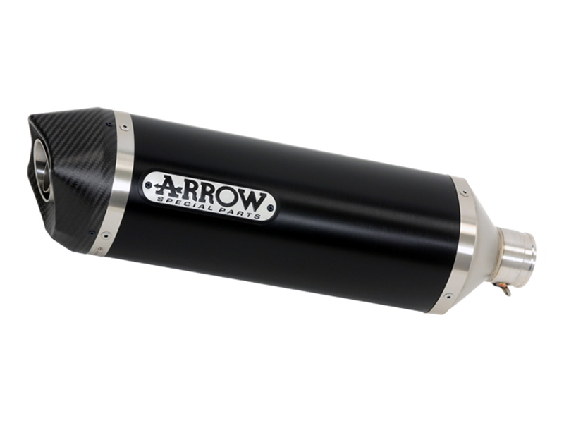 El silencioso escape Race-Tech Arrow 71837AKN es compatible tanto con el colector original como con el colector Arrow 71631MI.
