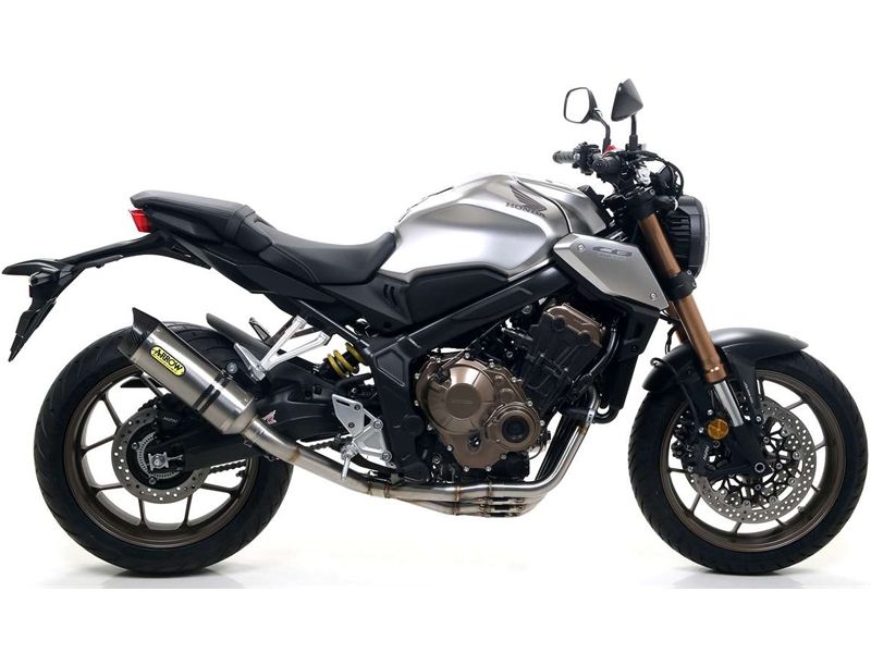 Silencioso escape Arrow 71892PK Honda CB 650 R 2019 Street Thunder (Titanio copa carbono). El silencioso de escape Arrow 71892PK Street Thunder se ha diseñado para la nueva generación de motocicletas con escapes pequeños y de posiciones extrañas. Arrow Street Thunder posee una mezcla de diseño y tecnología para ofrecer uno de los escapes más bonitos del mercado. (La información que facilita Ramirez Motoracing es orientativa y sujeta a la verificación en la web del fabricante).