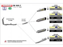 Silencioso escape Arrow 71901PRI Pro-Race Honda CB 500 F 2019 (Nichrom). Slip-on Arrow 71901PRI deriva directamente de los escapes de Moto Gp con forma de trompeta. El cuerpo principal del silencioso Arrow 71901PRI está fabricado en acero inoxidable Nichrom muy ligero y robusto. Para compensar la reducción del volumen, Arrow ha trabajado arduamente en la investigación de los mejores materiales fonoabsorbentes y termo aislantes. Se han realizado innumerables pruebas en pista y en el Departamento de Investigación y Desarrollo que le han permitido a Arrow introducir materiales y tecnologías nuevas más eficaces en el proceso de producción. Estos silenciosos los encontramos en version racing y homologada con Db-killer. (La información que facilita Ramirez Motoracing es orientativa y sujeta a la verificación en la web del fabricante). Válido también para la Honda CBR 500 R 2019-2020.