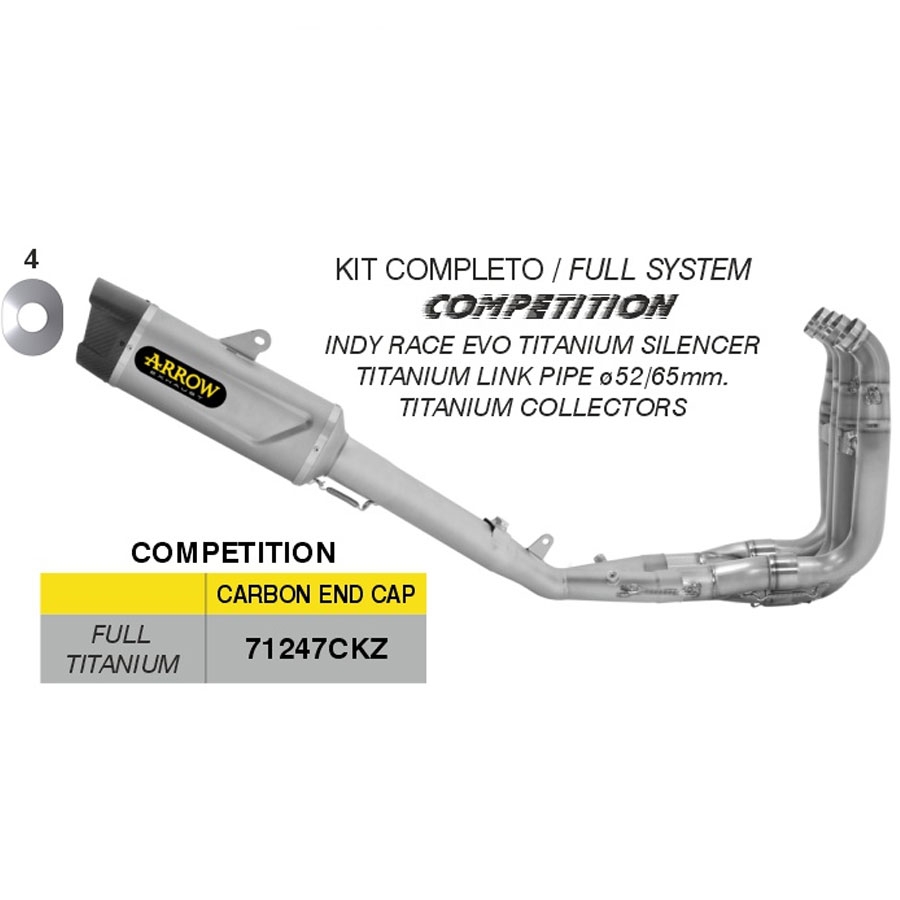 Escape completo Arrow 71247CKZ Competition Yamaha YZF R1 2025 Full Titanium. Escape completo Arrow 71247CKZ Competition – Yamaha YZF R1 2025 (Full Titanium). El escape completo Arrow 71247CKZ Competition está diseñado para ofrecer el máximo rendimiento en la Yamaha YZF R1 2025, combinando materiales ultraligeros con una ingeniería de competición. Su construcción en Full Titanium reduce significativamente el peso, mejora la aceleración y optimiza la salida de gases, brindando un sonido potente y agresivo.