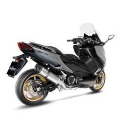 Escape completo Leovince 14342EU Lv One Evo Yamaha T-Max 560 2020. Escape completo Leovince Lv One Evo 14342EU específicamente diseñado para la Yamaha T-Max 560 2020-2021. El silencioso Lv One Evo posee un diseño compacto, moderno y de líneas cuadradas. El cuerpo del silencioso está realizado en acero inoxidable con revestimento AISI 304 para una resistencia, rendimiento y ligereza exepcional. La tapa final del silencioso LV One Evo está cortada asimétricamente y fabricada en fibra de carbono para combinar el máximo rendimiento y ligereza sin renunciar al estilo Made in Italy.