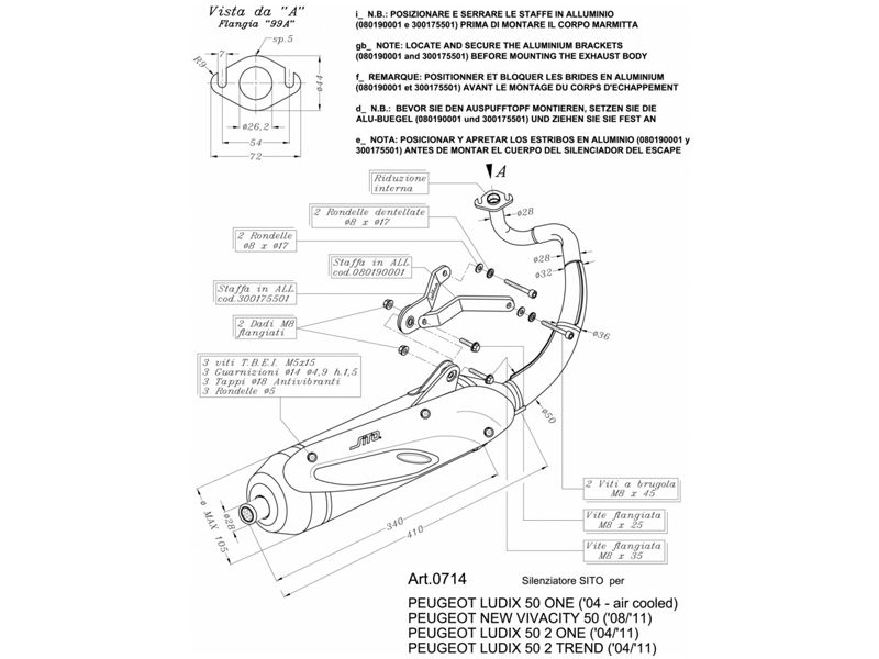 Escape Leovince 0714 SITO PEUGEOT KISBEE LUDIX 50 ONE air cooled 2 ONE 2 TREND NEW VIVACITY. Escape completo Leovince 0714 pertenece a la gama SITO y está realizado con un acero especial, empleando una tecnología de construcción a doble cámara. El silenciador interno es completamente independiente de la estructura exterior. La pintura especial negro mate ofrece una excelente resistencia a las altas temperaturas.