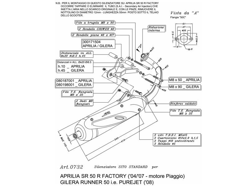 Escape Leovince 0732 SITO APRILIA SR 50 R FACTORY Motor Piaggio. Escape completo Leovince 0732 pertenece a la gama SITO y está realizado con un acero especial, empleando una tecnología de construcción a doble cámara. El silenciador interno es completamente independiente de la estructura exterior. La pintura especial negro mate ofrece una excelente resistencia a las altas temperaturas.