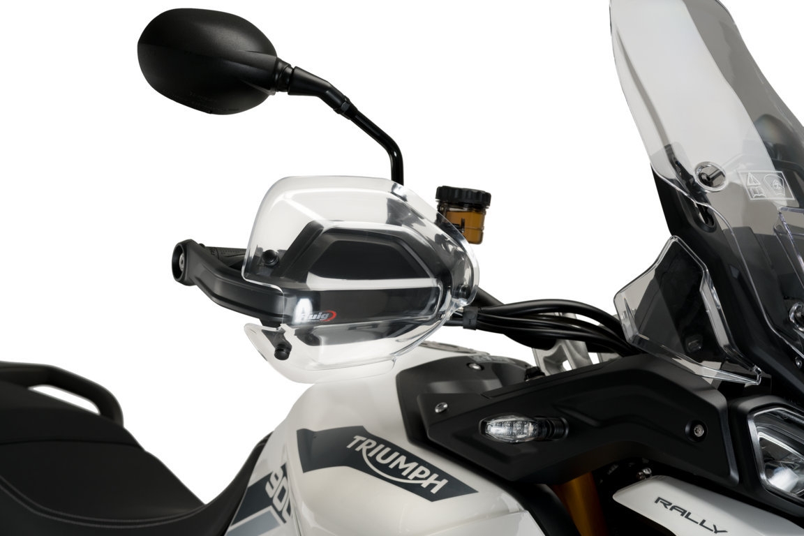 Extensión paramanos Puig 20378W Triumph Tiger 900 2021 transparente. Extensión de paramanos Puig 20378W para colocar sobre los paramanos originales de la Triumph Tiger 900 2021. Poseen un diseño que se integra perfectamete en la moto y que permite aumentar la protección contra los posibles impactos y las inclemencias meteorológicas. Fabricado con material PMMA. Junto a la pieza, Puig acompaña el producto con un fácil e intuitivo folleto de instrucciones de montaje. Precio de la pareja.