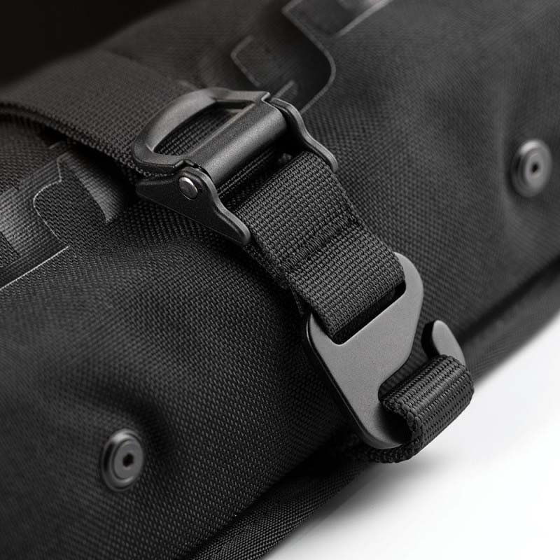 El cierre de gancho con leva ajustable mantiene la funda bien compacta y las herramientas firmes, evitando traqueteos y movimientos no deseados mientras conduces por pista o carretera.
