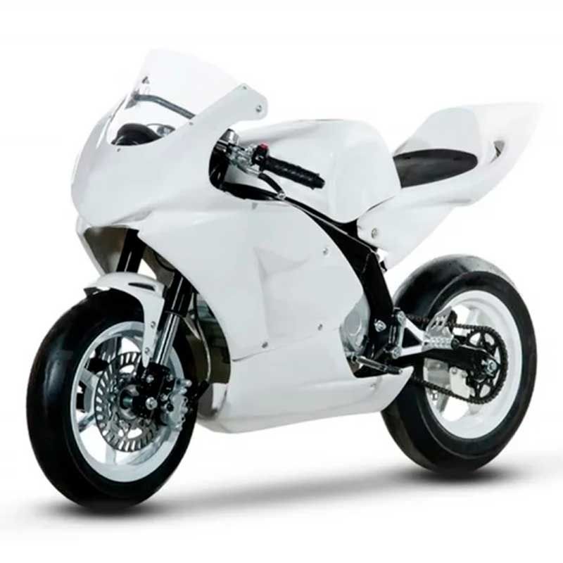 Con una distancia entre ejes de 1090mm y unas alturas de 690mm tanto en asiento como en manillar, es una miniGP compacta, pensada para que puedas colocar el cuerpo con facilidad y aprender posiciones (colgarte, cargar peso, mirar lejos) sin pelearte con la moto.