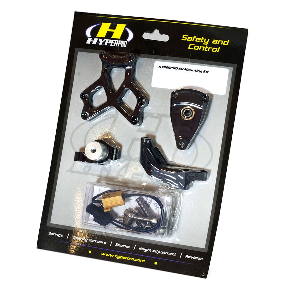 Los soportes Hyperpro están cuidadosamente diseñados para cumplir con los más altos estándares de calidad y rendimiento. Fabricados con materiales de primera calidad, estos kits de montaje son duraderos y robustos, garantizando una instalación segura y fiable del amortiguador de dirección. Gracias a su diseño específico, permiten una integración perfecta con la estructura de la moto, preservando la estética y el diseño original.