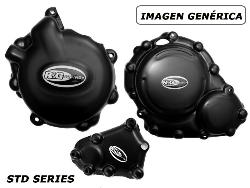 Kit tapas motor Rg-racing KEC0005BK. Las tapas protectoras de motor Rg-racing KEC0005BK están realizadas en polipropileno de 4 mm para ofrecer excelente resistencia a los impactos y peso muy ligero. Las tapas se fija con tornillos directamente sobre la cubierta original sin necesidad de quitarla. RG ha sido nombrado proveedor oficial del campeonato British Superbikes y las tapas de motor Rg-racing KEC0005BK están aprobadas para usar en todas las clases de carrera incluyendo, Superbike, Supersport y Superstock (Aprobados American Motorcyclist Association). Las tapas de motor Rg-racing KEC0005BK han sido desarrolladas con la colaboración de los mejores equipos de carreras. Diseñado específicamente para la Suzuki GSR600 2006-, GSR750 2011-. Este kit incluye 3 protectores (RG-ECC0110BK-izquierda, RG-ECC0111BK-derecha, RG-ECC0009BK-derecha).