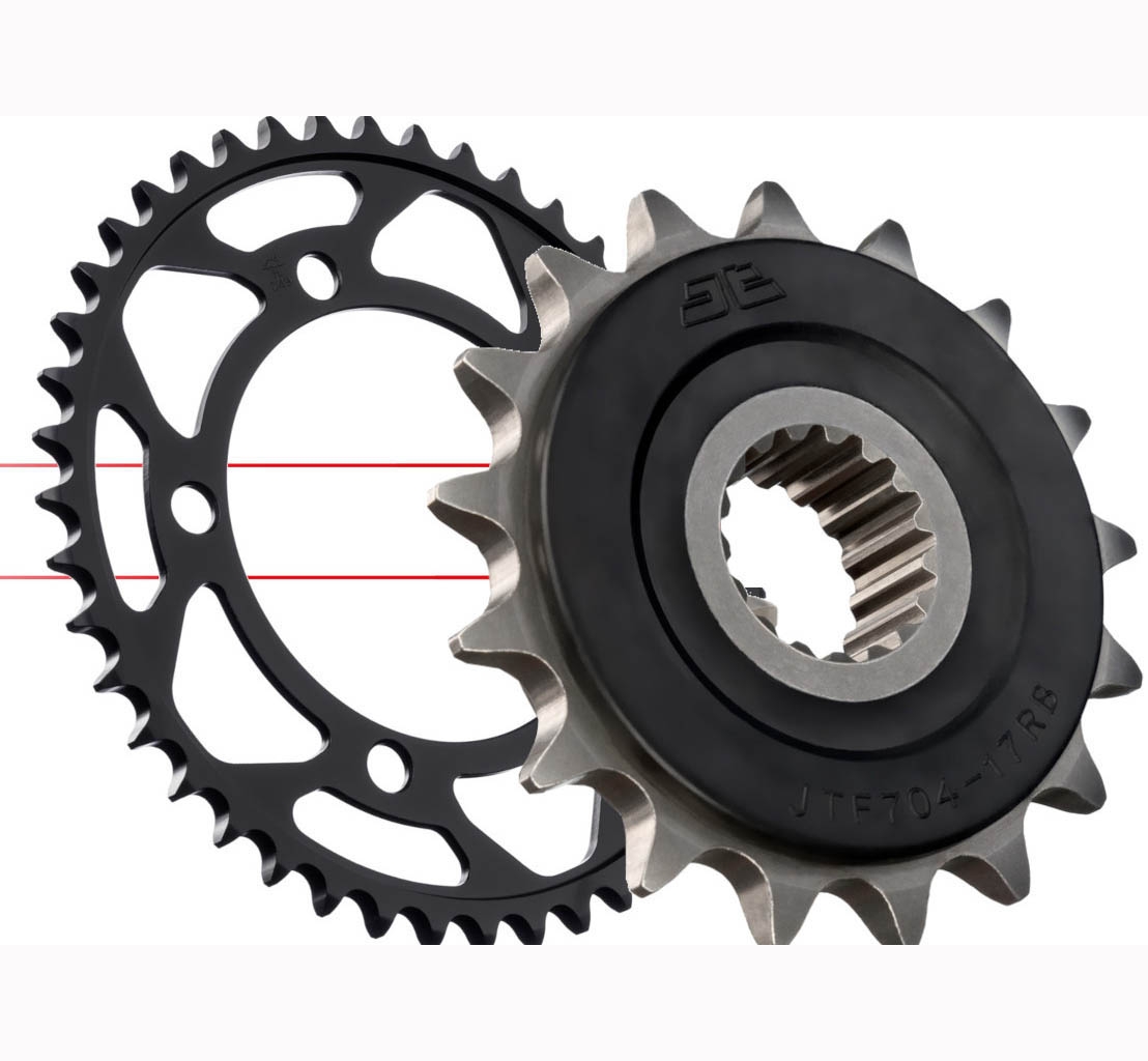 Los kits de arrastre incluyen una cadena Regina de alta calidad junto con una corona y un piñón JT Sprockets, componentes que aseguran una sincronización perfecta y una larga vida útil del sistema de transmisión. La calidad superior de la cadena Regina, conocida por su fiabilidad y durabilidad, se combina con la precisión y resistencia de la corona y el piñón JT Sprockets, fabricados con materiales de alta resistencia.