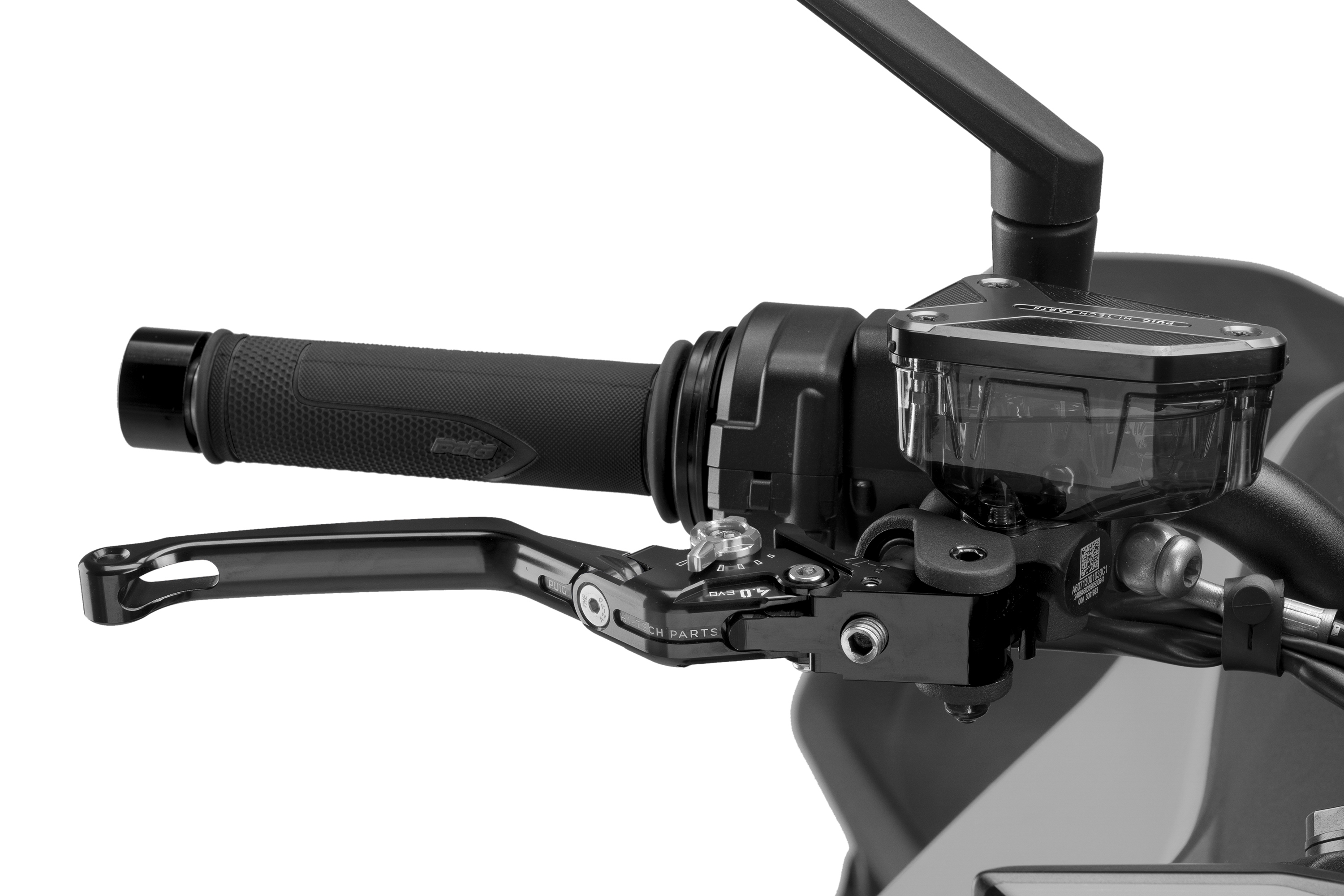 Maneta freno 4.0 Puig 4110NP Abatible (sin herraje). Manetas Puig 4.0 Abatibles – Evolución racing, ergonomía total. En Ramírez Moto ya están disponibles las nuevas manetas de freno y embrague Puig 4.0 Abatibles, el último paso evolutivo de una saga referente en el mundo de los accesorios de moto. Derivadas de la exitosa serie 3.0, las Puig 4.0 llegan con un diseño más estilizado, mayor precisión y mejoras orientadas al rendimiento y la seguridad en conducción deportiva y urbana.