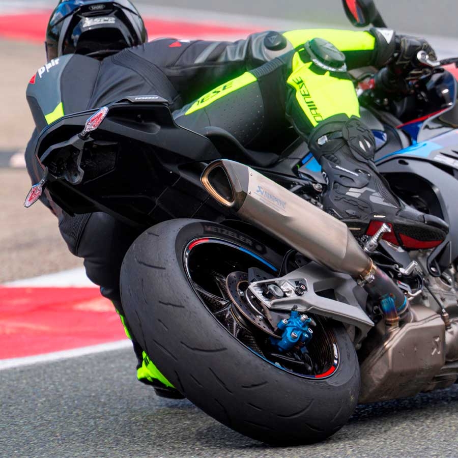 Además, el neumático incorpora un diseño lateral de alto contraste que refuerza su imagen agresiva y deportiva, aportando una estética más marcada y actual a motos donde el neumático también forma parte del conjunto visual. Este detalle, aunque secundario frente al rendimiento, encaja muy bien con el carácter premium y racing del modelo.