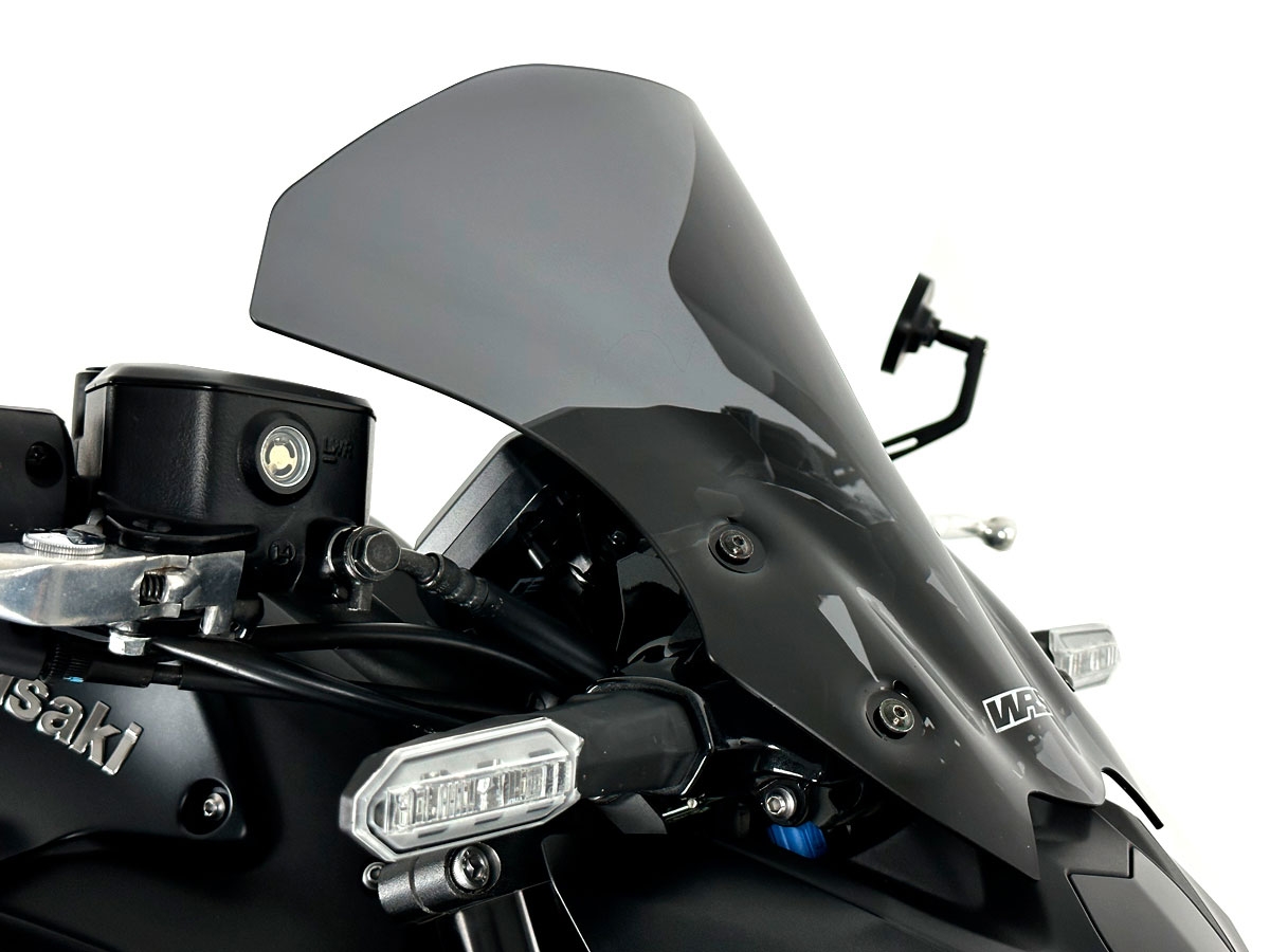 El diseño del Parabrisas Touring WRS ha sido cuidadosamente desarrollado para encajar a la perfección con las líneas de la Kawasaki Z900 ABS. Se han realizado mejoras específicas en las líneas del carenado para asegurar que el flujo de aire fluya directamente sobre el carenado de la moto y sobre el casco del piloto, mejorando así la comodidad de conducción sin comprometer la aerodinámica.
