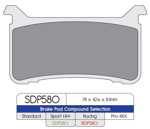 Pastillas freno Dp Brakes SDP580HH Plus SDP Sport HH. Pastillas de freno sinterizadas Dp Brakes SDP Sport HH+ sinterizadas que garantizan una excelente durabilidad en todas las condiciones de uso. Indicadas para todas las motocicletas deportivas, la gama Dp Brakes SDP Sport HH+ ofrece un avanzado compuesto para rodar a altas velocidades en carretera o pista con un frenado de altísimo rendimiento. También proporcionan un funcionamiento libre de polvo sin ruido ni chirridos. Su escudo térmico de alta tecnología elimina la reducción de frenada mientras que el rodaje rápido proporciona el máximo rendimiento de frenado después de pocos kilometros. La imagen mostrada de las pastillas de freno Dp Brakes SDP580HH+ puede ser genérica.