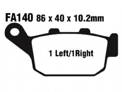 Pastilla de freno Ebc FA140V. El Compuesto V de Ebc es Semi-Sinterizado y combina las más altas cualidades de una pastilla de freno orgánica con la resistencia de una pastilla de freno sinterizada. La gama V de Ebc es ideal para motocicletas Touring de gran cilindrada. Precio por juego.