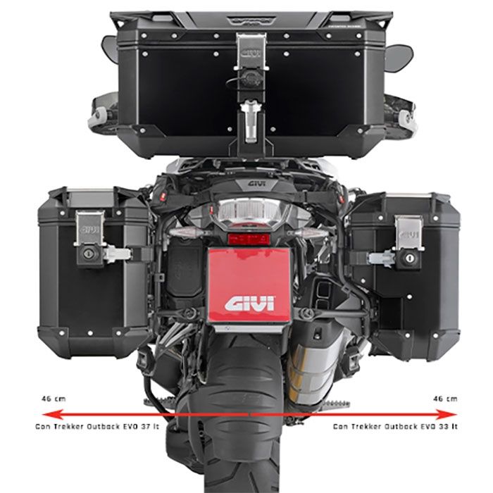 Caracterizado por su configuración PL ONE-FIT, el portamaletas incluye un lado derecho contorneado, optimizado para acoger las maletas MONOKEY® CAM-SIDE Trekker Outback. Este diseño contorneado no solo mejora la aerodinámica y la estética de la motocicleta, sino que también se adapta a las especificaciones de cada modelo, garantizando un ajuste preciso y una instalación sin esfuerzo.