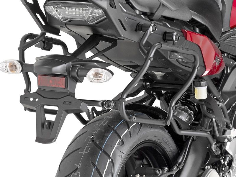 Soporte portamaletas lateral Givi PLXR2122 Yamaha MT-09 Tracer 2015/2017. Nuevo portamaletas lateral Givi PLXR2122 diseñado para la MT-09 Tracer y que permite la fijación rápida en las maletas Givi V35 Monokey Side. Construido con tubos de 18 mm, es estremadamente resistente a las vibraciones y golpes.