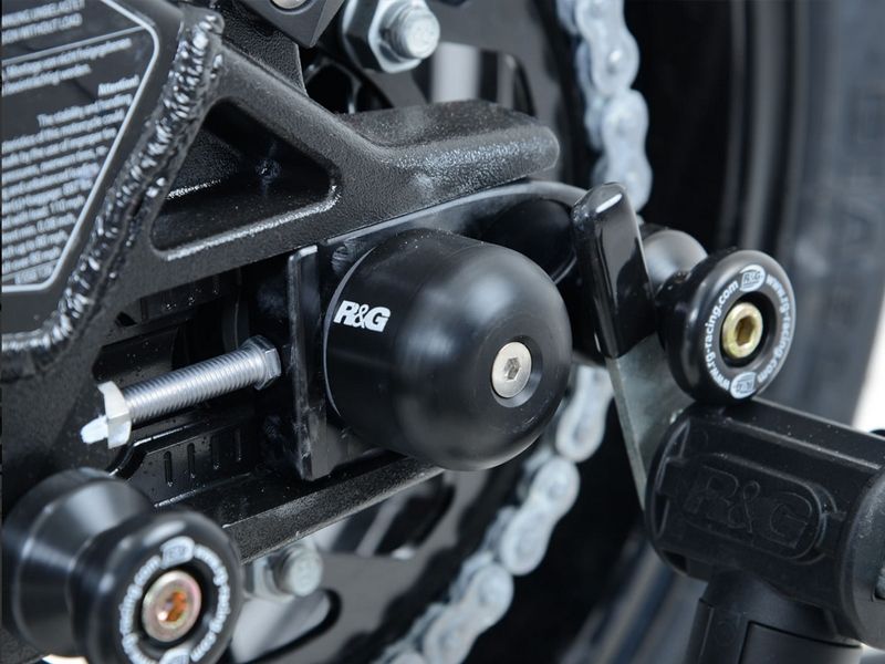 Protector basculante Rg-racing SP0057BK. Fabricados de plástico polyetileno de alta densidad (PEAD) para proteger la parte trasera de la moto en caso de una caída o accidente.