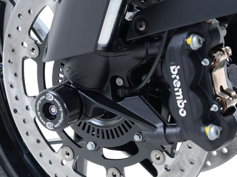 Protector horquilla Rg-racing FP0138BK. El protector de horquilla Rg-racing FP0138BK está diseñado para minimizar los daños de la horquilla, pinzas de freno y tuercas del eje en caso de una caída leve. Fabricados con material altamente resistente a la abrasión. Precio del juego de protectores. Imagen genérica.