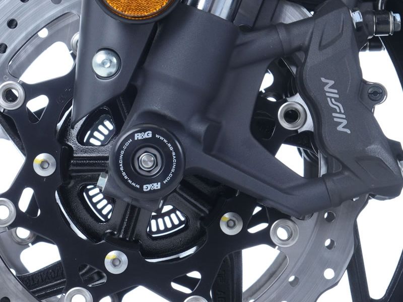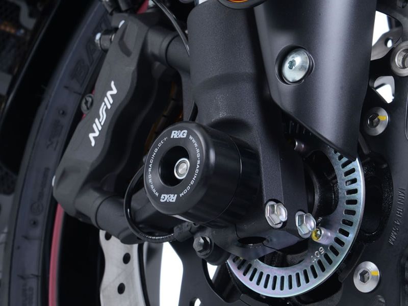 Protector horquilla Rg-racing FP0196BK. El protector de horquilla Rg-racing FP0196BK está diseñado para minimizar los daños de la horquilla, pinzas de freno y tuercas del eje en caso de una caída leve. Fabricados con material altamente resistente a la abrasión. Precio del juego de protectores. Imagen genérica.