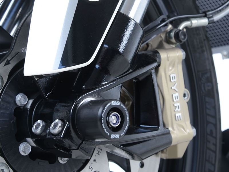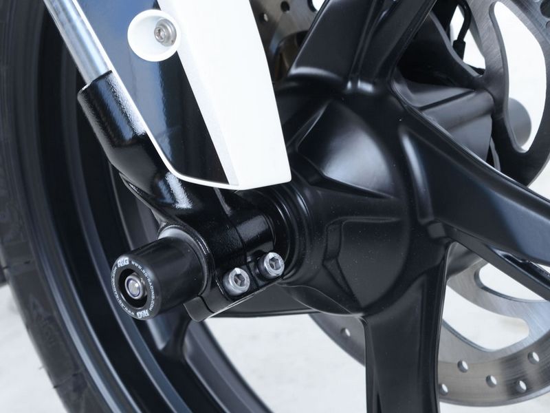 Protector horquilla Rg-racing FP0197BK. El protector de horquilla Rg-racing FP0197BK está diseñado para minimizar los daños de la horquilla, pinzas de freno y tuercas del eje en caso de una caída leve. Fabricados con material altamente resistente a la abrasión. Precio del juego de protectores. Imagen genérica.