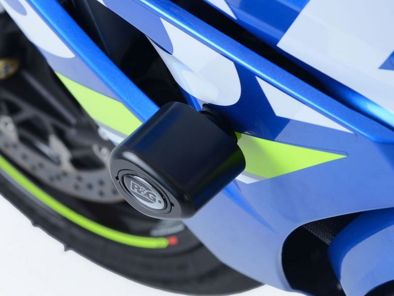 Protector de caída Rg Racing CP0421BL Suzuki GSX-R 1000 2017 Negro. Los protectores de caída Rg Racing CP0421BL Aero Style se caracterizan por ser extramadamente resistentes a los impactos. Para garantizar la máxima resistencia se utilizan tornillos especiales de alta resistencia fabricados con acero, diseñados para doblarse sobre el impacto en lugar de cortarse. Taco realizado con material altamente resitente a la abrasión y los impactos. Necesario modificar el carenado (agujeros de 28 mm).