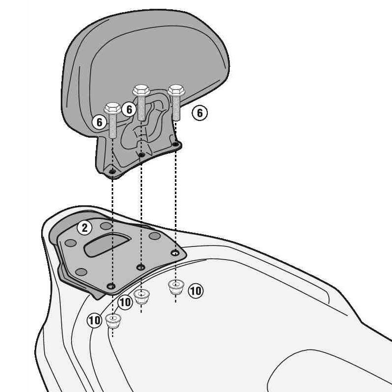 Respaldo Givi TB5619A Piaggio MP3 HPE 400 / 400 Sport / 530 Exclusive 2022. Respaldo específico Givi TB5619A para Piaggio MP3 HPE 400 / 400 Sport / 530 Exclusive 2022 con diseño muy ergonómico y que se adapta perfectamente a las necesidades del pasajero. Al montar el respaldo Givi TB5619A no se puede colocar la fijacion del portaequipajes y la maleta.