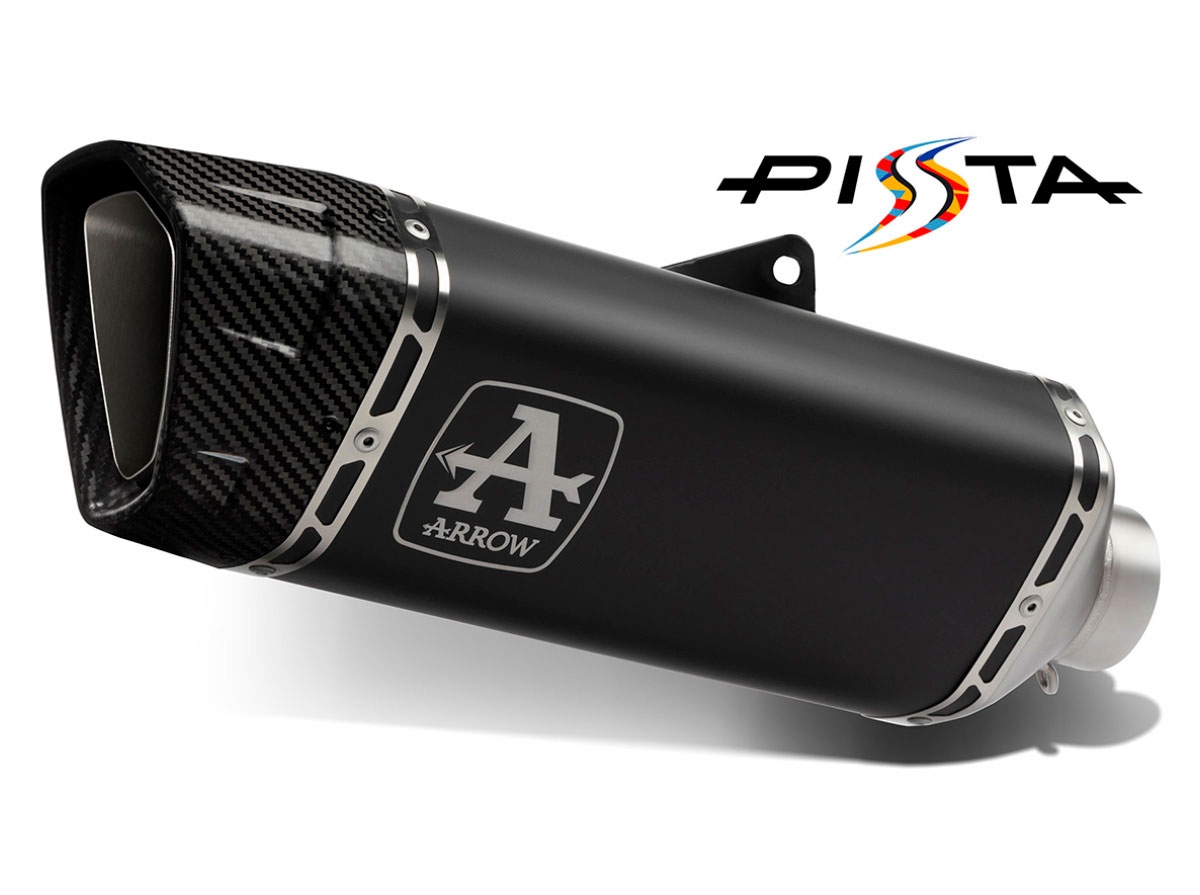 Silencioso escape Arrow 71001PT Pista Aprilia RSV 4 1100 Factory 2019-2020 (conector titanio). Pista es el nuevo escape de Arrow diseñado para las motos Superbike con más potencia. Este escape posee un diseño de lo más agresivo y ha sido desarrollado para ofrecer altas prestaciones, gracias a la utilización de la mejor tecnología junto con componentes de las más alta calidad. El silencioso Arrow Pista cuenta con el cuerpo en aleación especial de Titanio, terminal en fibra de carbono con entramado T-Will y material térmico de nueva generación en el interior. Entre sus ventajas encontramos una disminución aproximada del peso del 25% con respecto al silencioso de escape original y un aumento de la potencia entre el 3 y el 5% (según modelo).