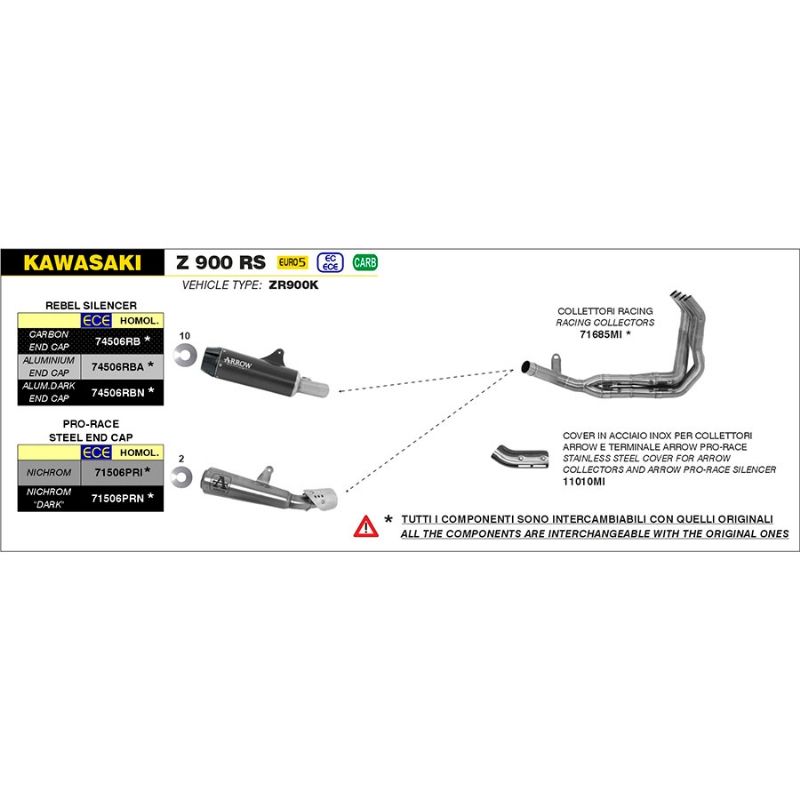 Caracteristicas principales silencioso escape Arrow Pro-Race para Kawasaki Z900 RS 2022-2023: