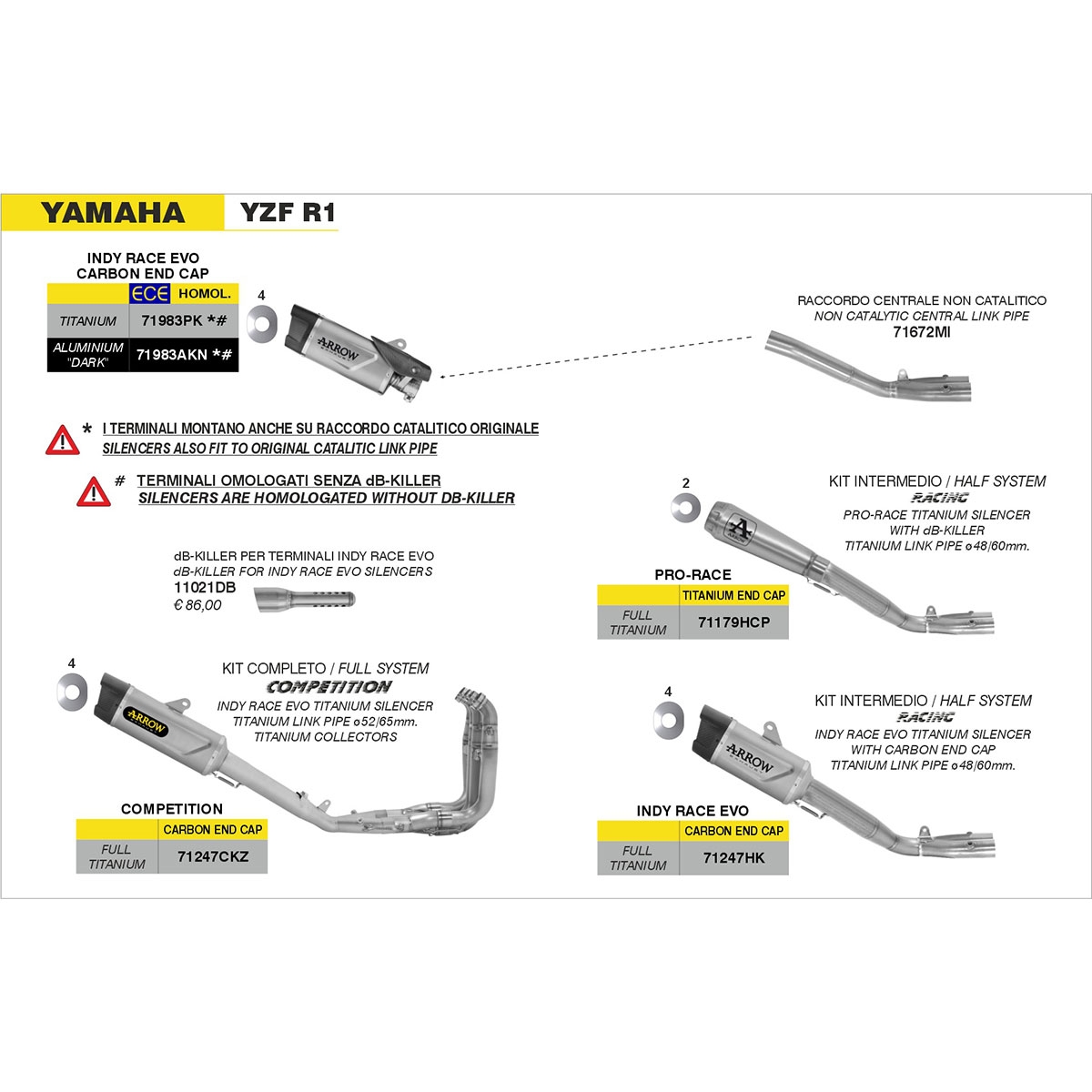 Silencioso escape Arrow 71983PK Indy Race EVO Yamaha YZF R1 2025 titanio fondo carbono