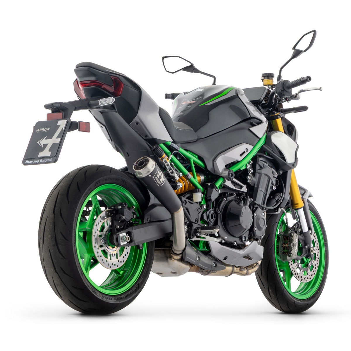 Haz que tu Kawasaki Z900 2025 suene y luzca como una moto de competición con el silencioso Arrow Pro-Race Nichrom Dark 71986PRN. Disponible en Ramirez Moto con atención personalizada.