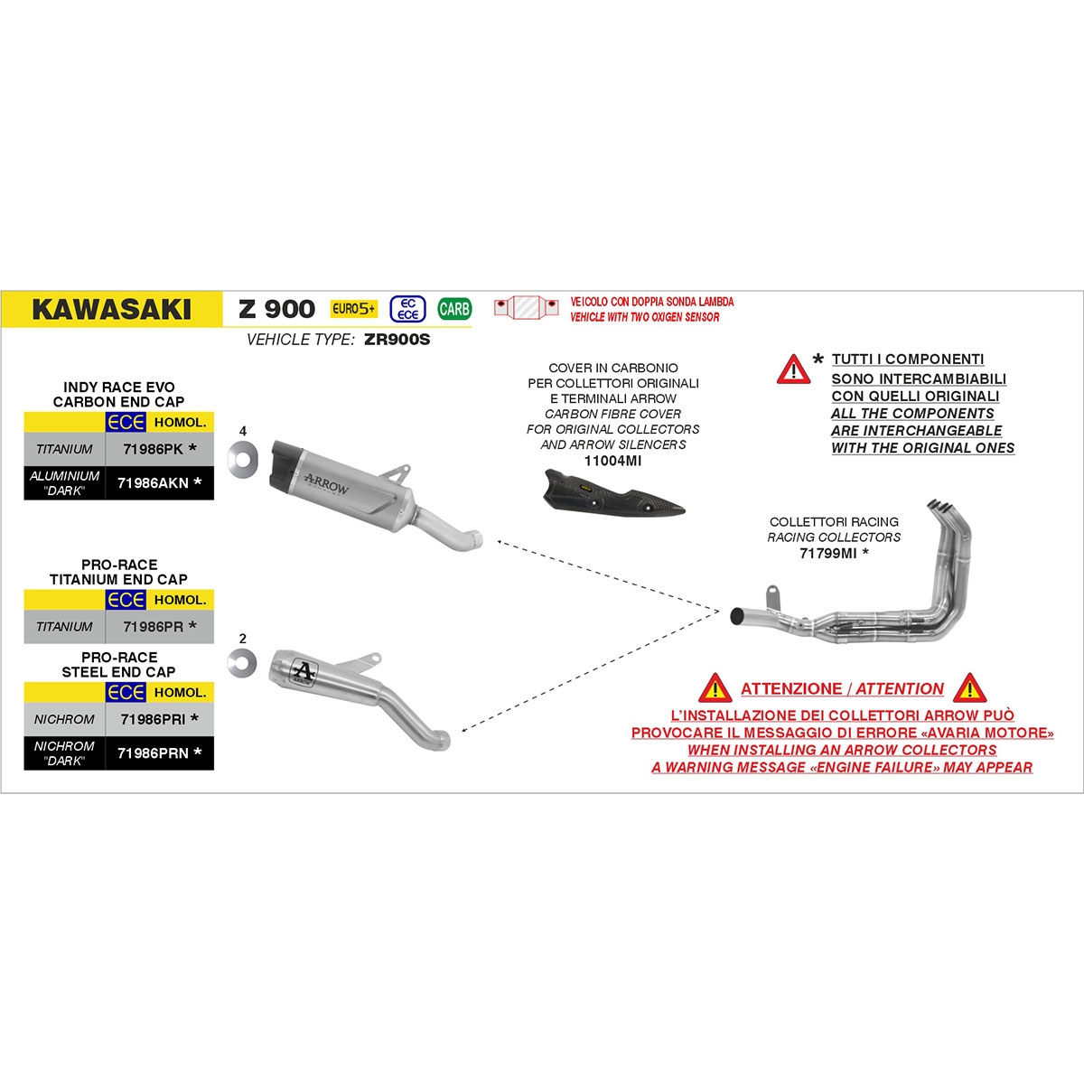 Silencioso escape Arrow 71986PRN Pro-Race Kawasaki Z 900 2025 Nichrom Dark