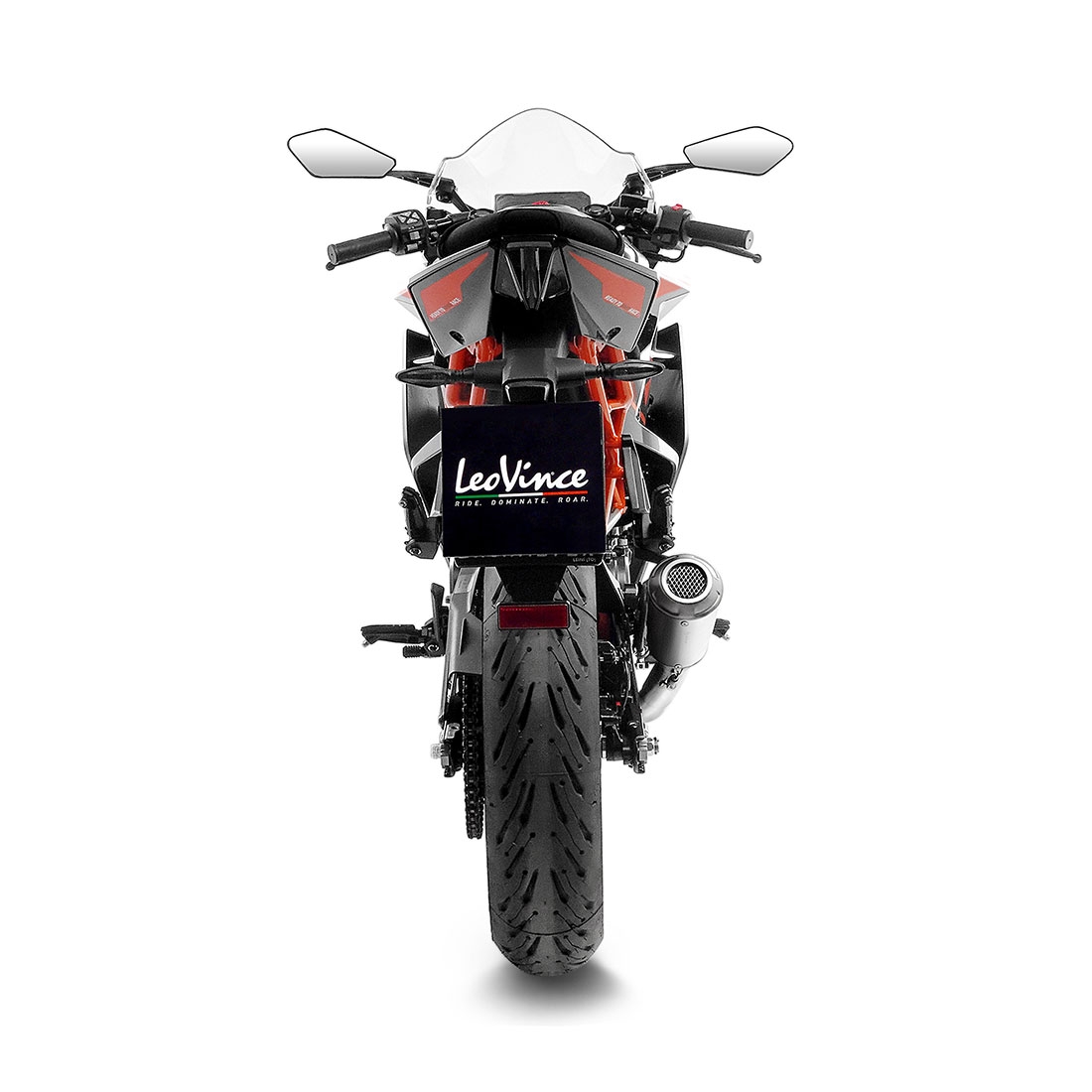 Silencioso escape Leovince 15255 LV-10 KTM RC 125 E5 2022-2023. El escape LeoVince LV-10 para KTM RC 125 E5 2022-2023 es el resultado de la colaboración con los mejores equipos de Moto2 y Moto3 y el saber hacer adquirido durante años de experiencia en las carreras de MotoGP y SBK. Leovince ha desarrollado un silencioso muy compacto para garantizar la máxima ligereza, el máximo rendimiento y el inconfundible sonido racing LeoVince. La copa de salida con acabado arenado está equipada con una red especial apagachispas para infundir en el silenciador un aspecto muy racing. (La información que facilita Ramirez Motoracing es orientativa y sujeta a la verificación en la web del fabricante).