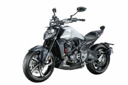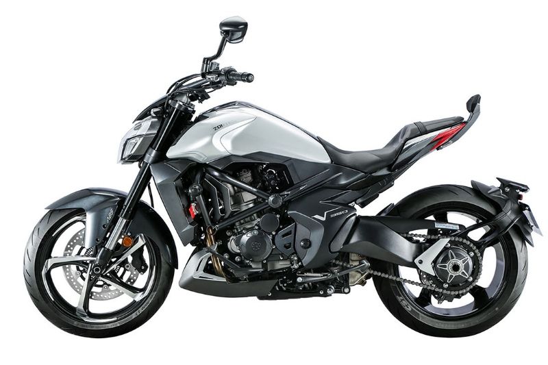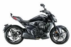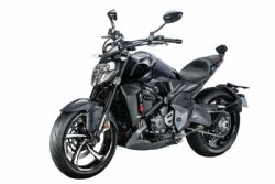 Zontes 350V es una custom-muscle de carácter premium: potencia aprovechable, parte ciclo de alto nivel y un diseño que llama la atención desde el primer vistazo gracias a su basculante monobrazo de aluminio.